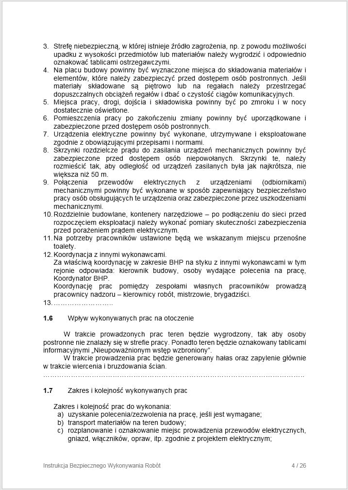 Instrukcja Bezpiecznego Wykonania Robót (IBWR) - Prace montażowe instalacji elektrycznej w nowym obiekcie