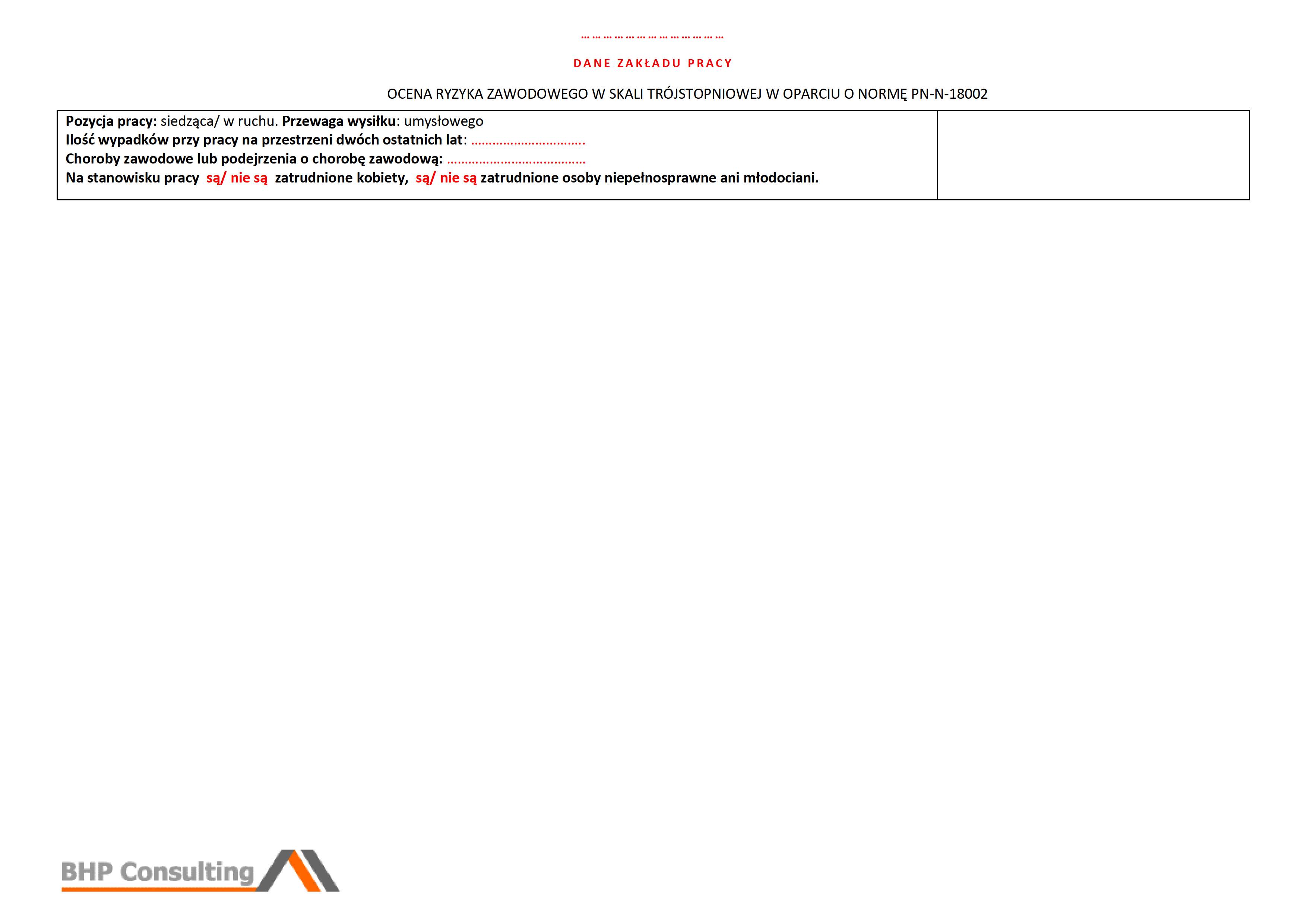 - kompletną ocenę ryzyka zawodowego psychologa (plik Word),