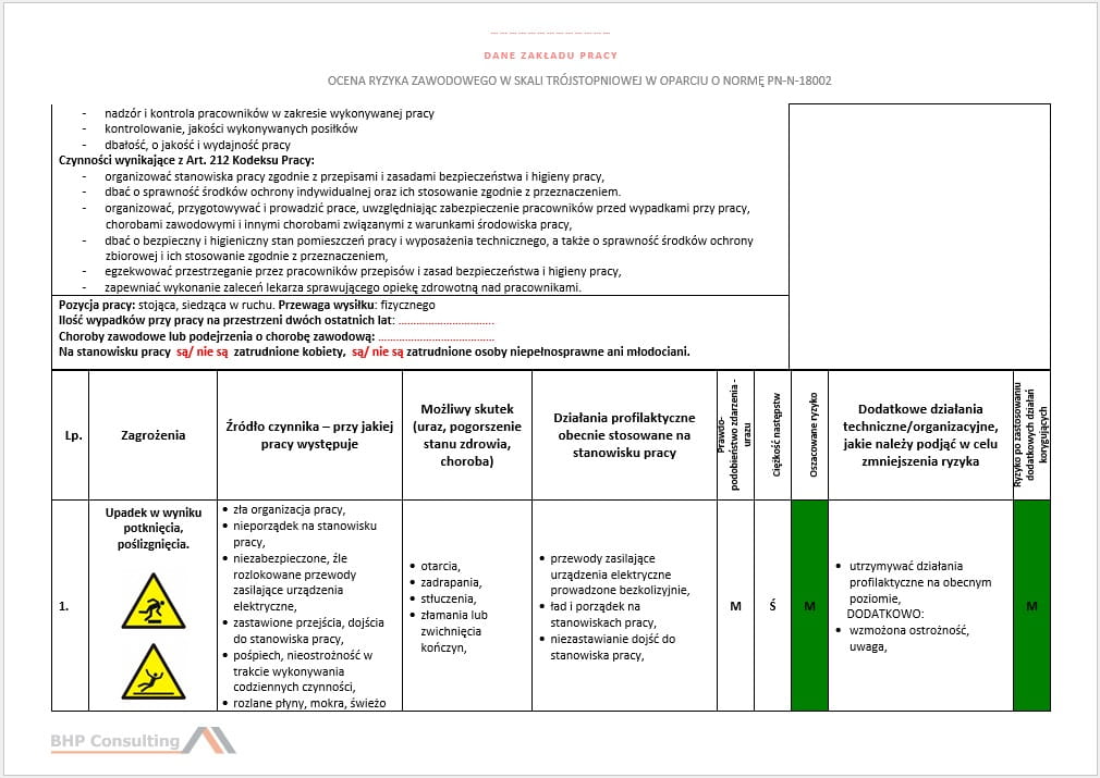 Masz do dyspozycji kartę oceny ryzyka zawodowego wg normy PN-N 18002.