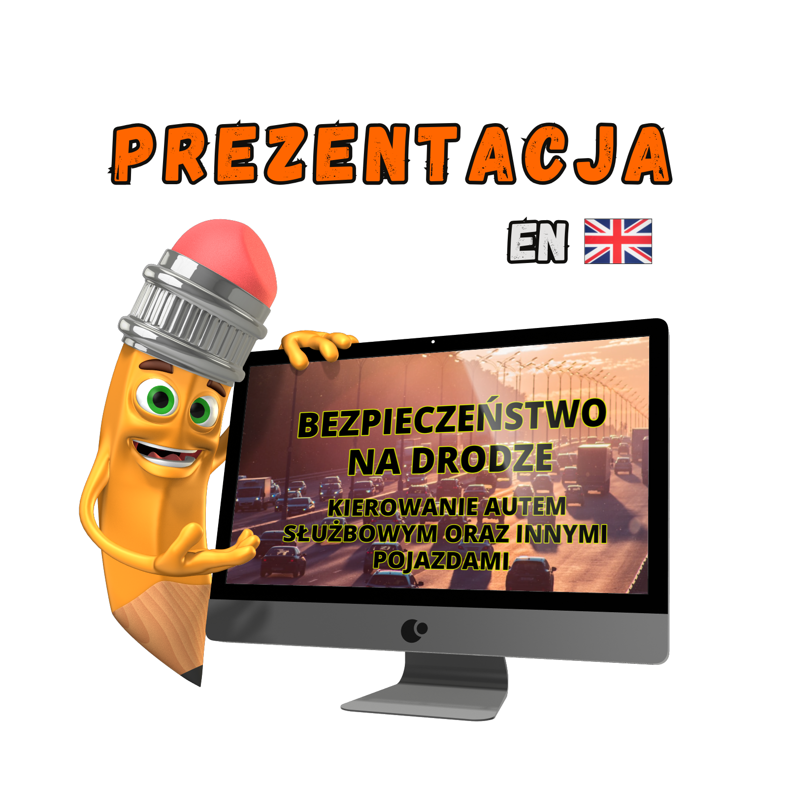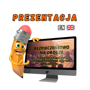Gotowa prezentacja szkoleniowa BHP w języku angielskim „Bezpieczeństwo na drodze – kierowanie autem służbowym i innymi pojazdami”. Materiał PowerPoint do prowadzenia szkolenia dla pracowników korzystających z pojazdów w pracy.