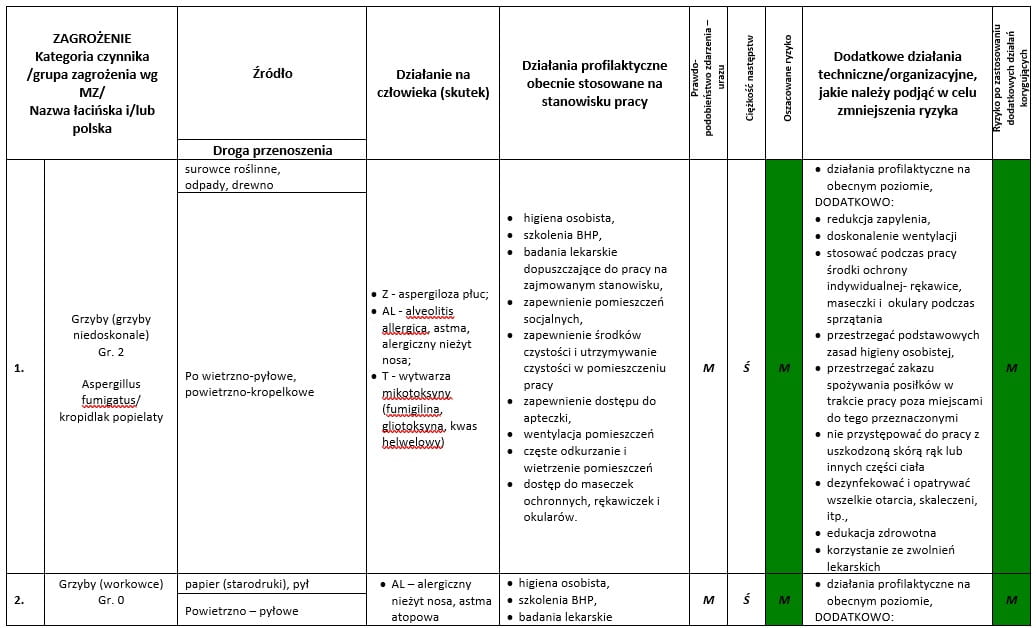 Karta oceny ryzyka zawodowego w związku z występowaniem na stanowisku pracy szkodliwych czynników biologicznych na stanowisku bibliotekarze + możliwość konsultacji ze specjalistą ds. BHP + GRATIS