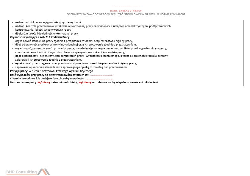 Masz do dyspozycji kartę oceny ryzyka zawodowego wg normy PN-N 18002.