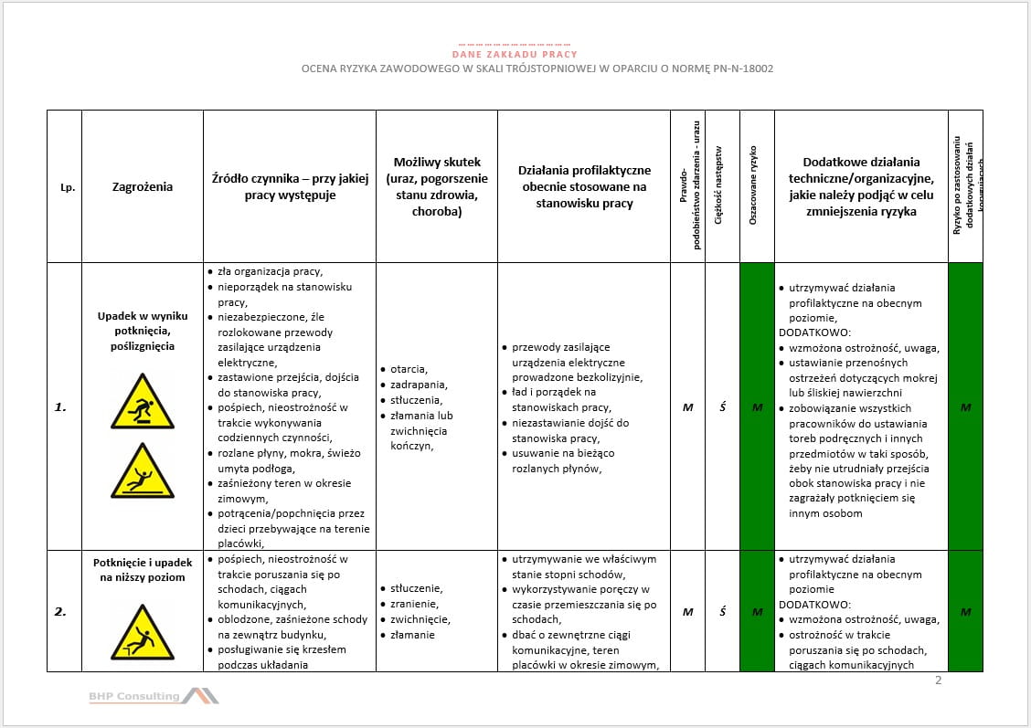 Masz do dyspozycji kartę oceny ryzyka zawodowego wg normy PN-N 18002.