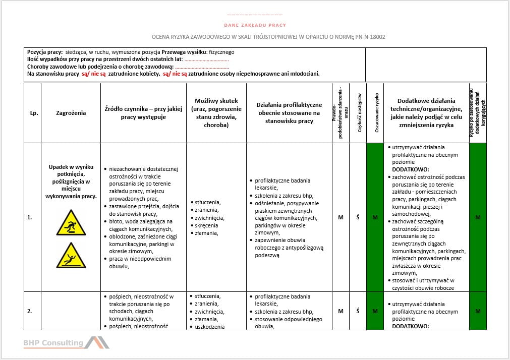 Masz do dyspozycji kartę oceny ryzyka zawodowego wg normy PN-N 18002.