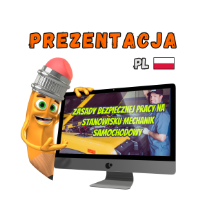 - Oszczędność czasu – prezentacja jest gotowa do użycia, co pozwala zaoszczędzić czas na przygotowywanie materiałów szkoleniowych dotyczących BHP dla mechaników.