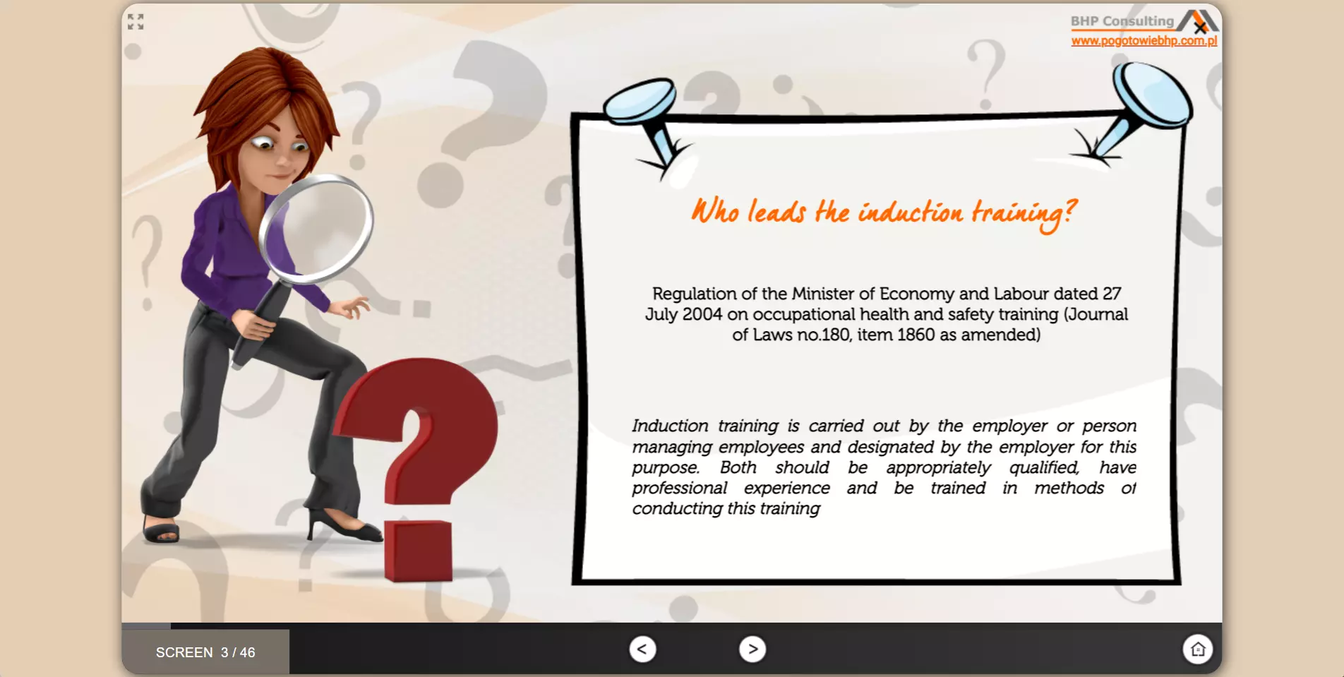 Szkolenie BHP online „Metodyka prowadzenia instruktażu stanowiskowego” w języku angielskim. Dedykowane dla pracodawców i kadry kierowniczej, które obejmuje zasady prowadzenia instruktażu stanowiskowego.
