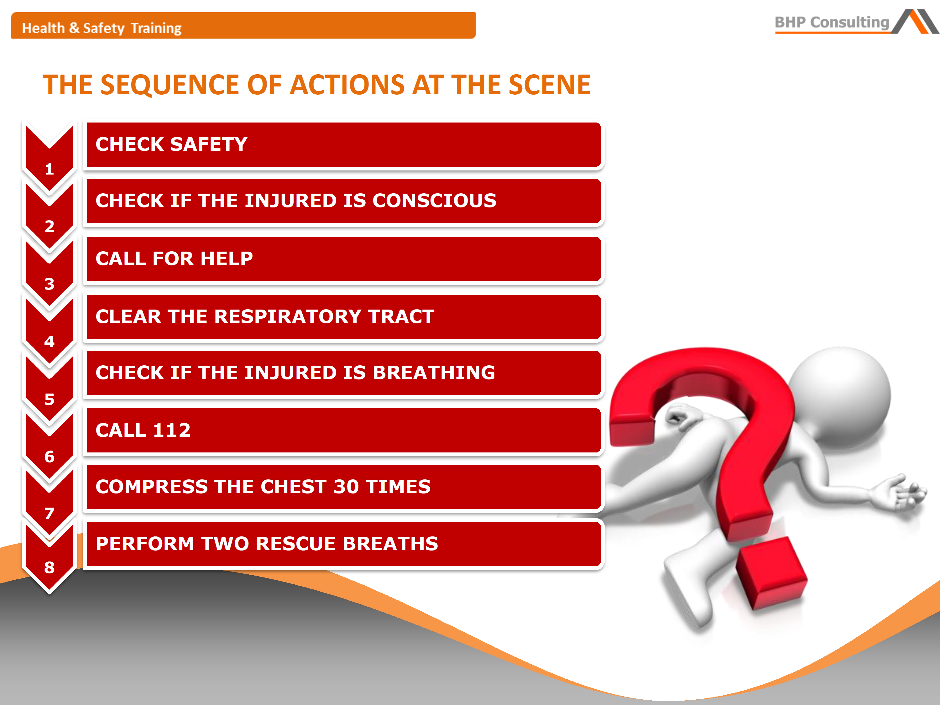 - Łańcuch przeżycia i kolejność działań na miejscu zdarzenia.