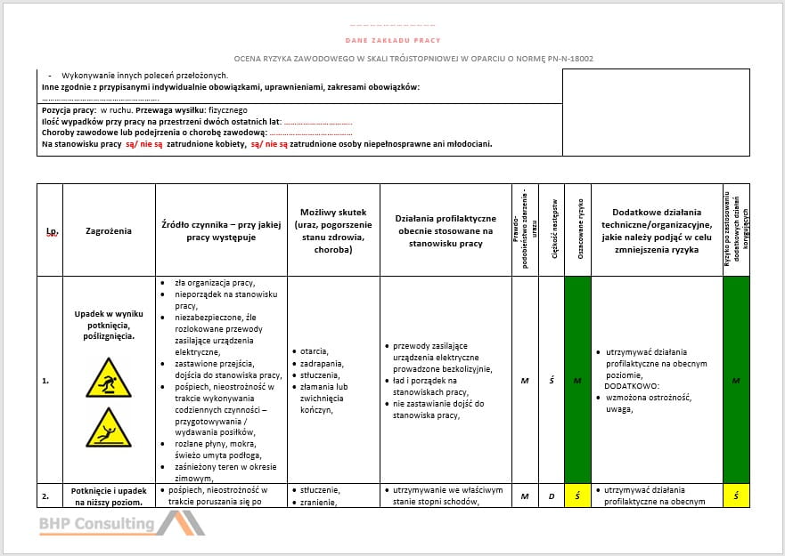 Masz do dyspozycji kartę oceny ryzyka zawodowego wg normy PN-N 18002.