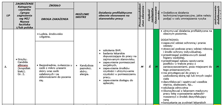 - Tak, jeśli jesteś świadomy tego, że zgodnie z wymaganiami prawa, ocena ryzyka zawodowego należy do podstawowych obowiązków pracodawcy a na stanowiskach występują również zagrożenia biologiczne.