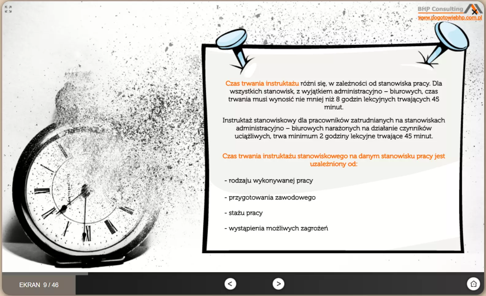 Szkolenie BHP online „Metodyka prowadzenia instruktażu stanowiskowego” w formie e-learningu.